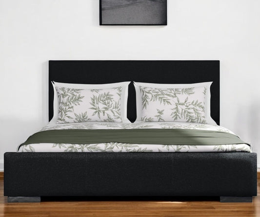 Black/White Solid Wood & Faux Leather Queen Bed Frame
