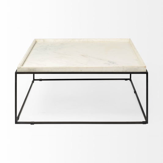 White & Copper Genuine Marble & Metal Oval Coffee Table