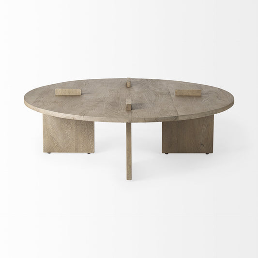 Dark Brown Genuine Marble & Solid Wood Coffee Table