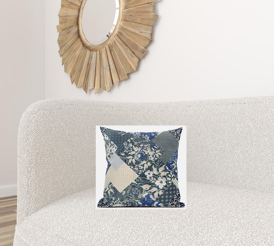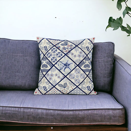 White Blue Patch Suede Pillow