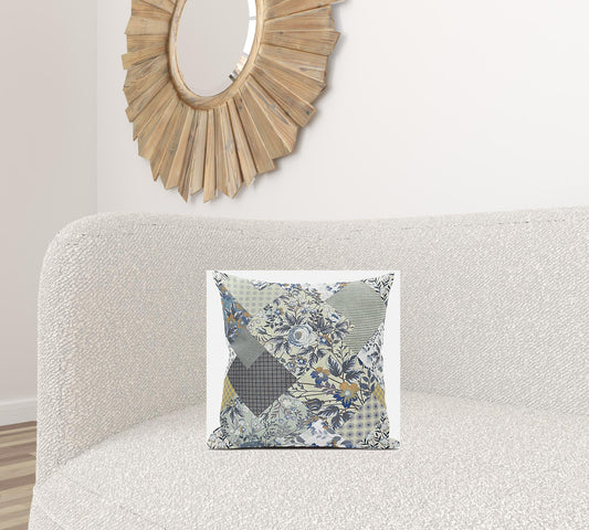 Cream Gray Patch Suede Pillow