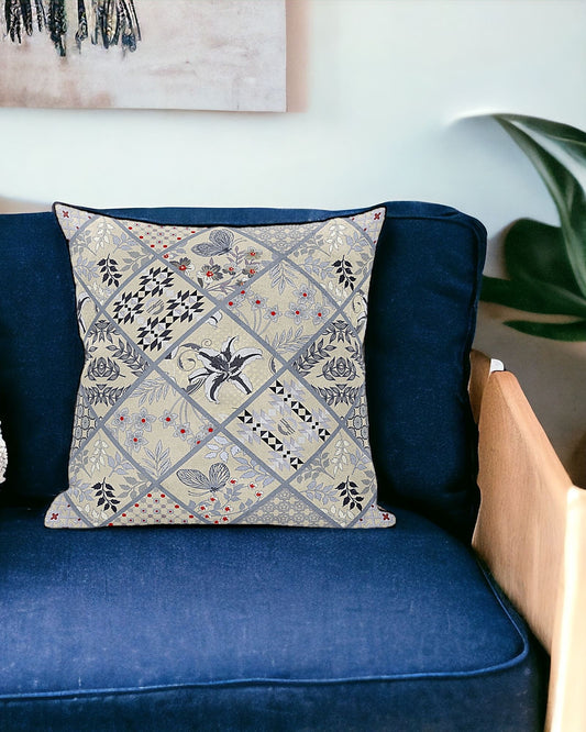 Gray Cream Floral Suede Pillow
