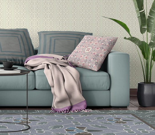 Taupe & Purple Cotton Pillow w/ Embroidery