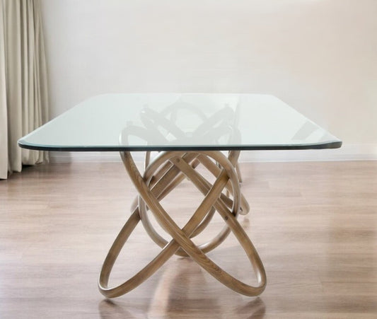 Clear And Natural Glass And Solid Wood Pedestal Base Dining Table