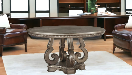 Brown Solid Wood Pedestal Base Dining Table