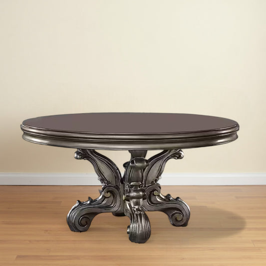 Gray Rounded Solid Wood Pedestal Base Dining Table