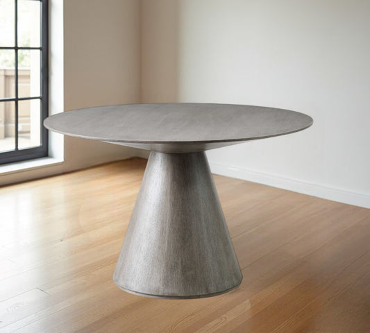 Gray Solid Wood Pedestal Base Round Top Dining Table