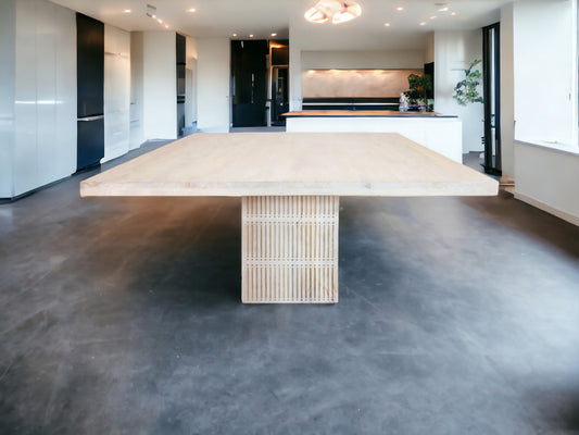 Ivory Square Solid Wood Pedestal Base Dining Table
