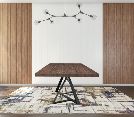 Walnut And Black Rectangular Geo Trestle Wood Dining Table