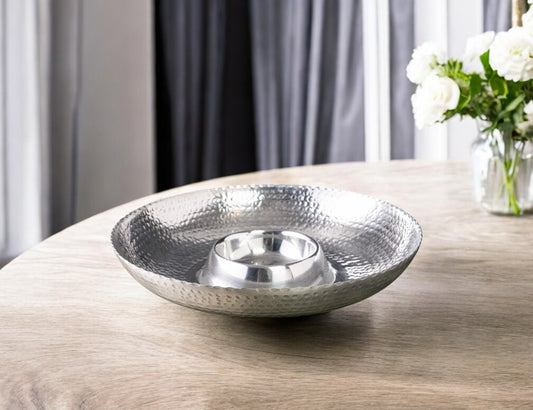 Handcrafted Hammered Stainless Steel Chip And Dip Server