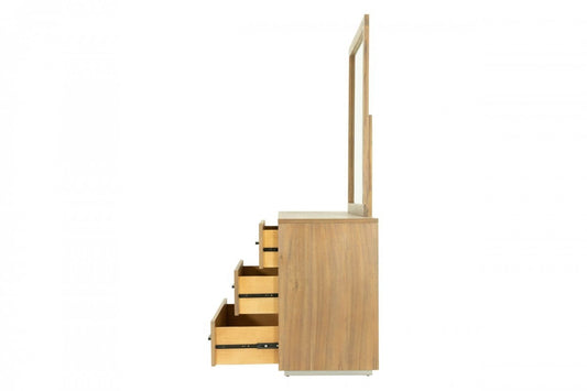 Champagne Wood Mirrored 7-Drawer Triple Dresser