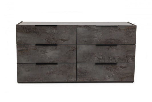 Walnut And Grey Faux Marble Wood 6-Drawer Double Dresser