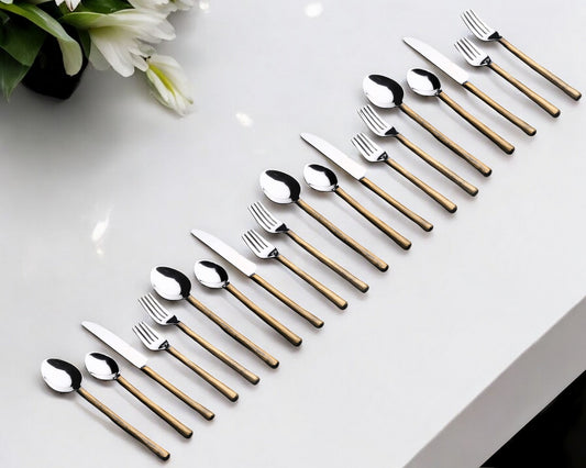 Matte Gold Stainless Steel 20-Piece Hand Forged Flatware Set