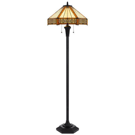 Bronze 2-Light Floor Lamp w/ Tiffany Glass Shade