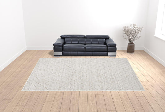 8 x 10 Ivory & Silver Striped Hand Woven Rug