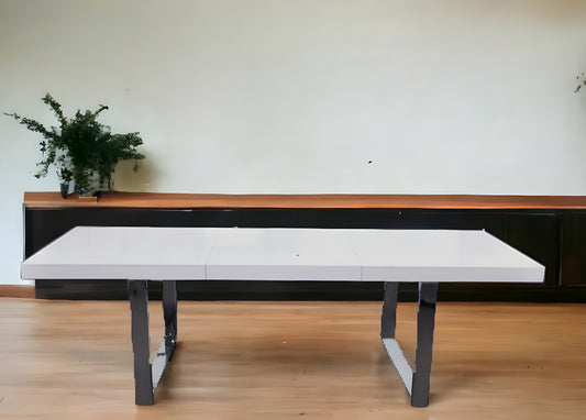 White Mdf Extendable Dining Table With Stainless Steel Legs