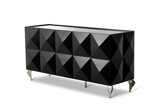 Black Lacquer Steel Sideboard w/ 3 Doors