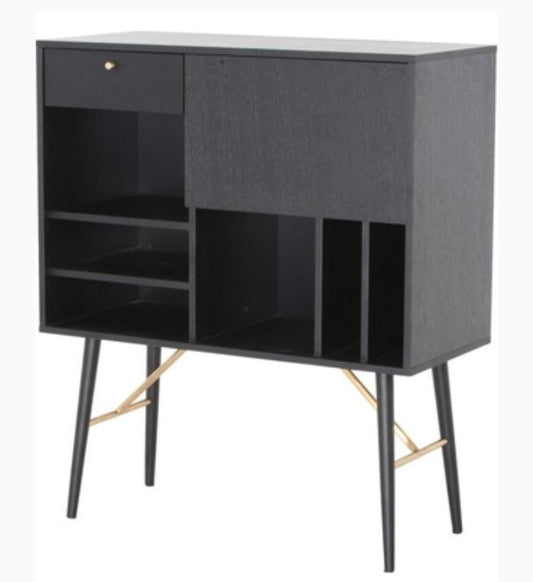 Black Lacquer Sideboard w/ 2 Doors & 3 Drawers