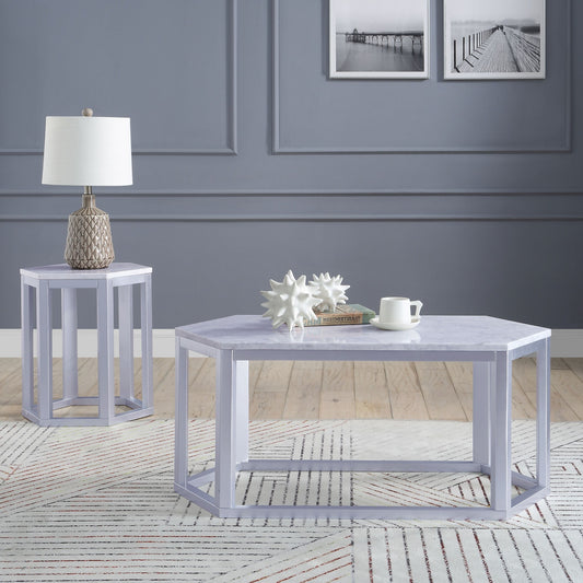 Brown & White Faux Marble & Solid Wood Coffee Table