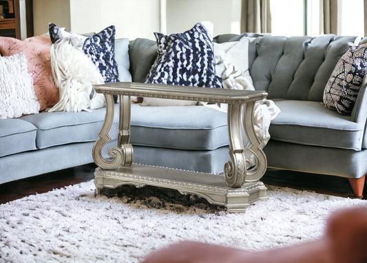 Brown & Black Metal Coffee Table w/ 2 Shelves
