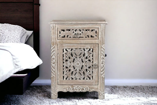 Distressed Black 2 Drawer Solid Wood Nightstand