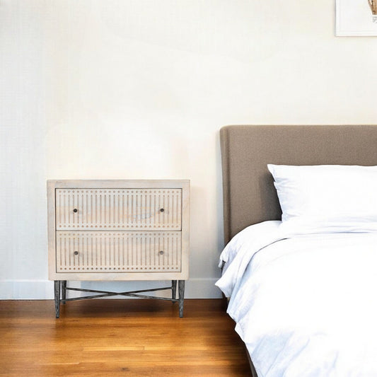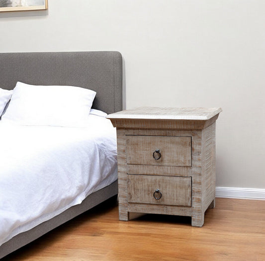 Dark Brown 2 Drawer Solid Wood Nightstand