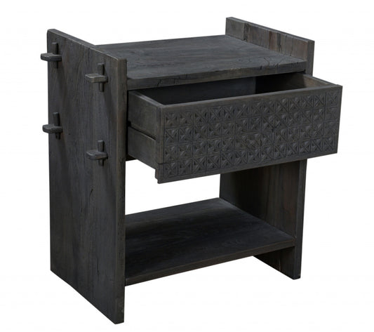 Distressed Black 3 Drawer Floral Carved Nightstand