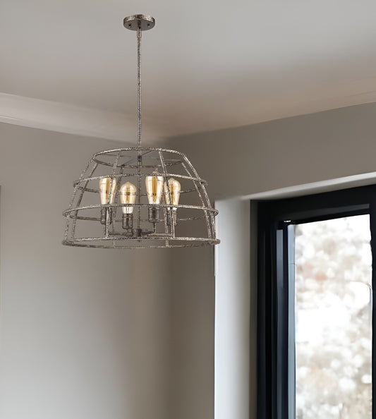 Rebarre 4-Light Antique Silver Drum Pendant