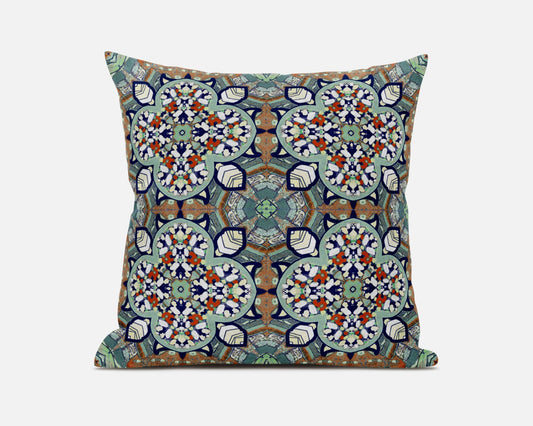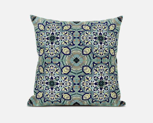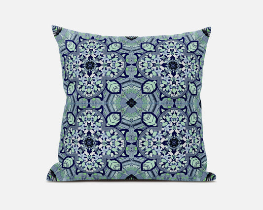 Blue Aqua Cloverleaf Boho Suede Pillow
