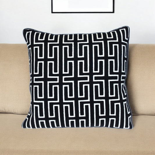 Beige & Black Southwestern Cotton Pillow w/ Tassels