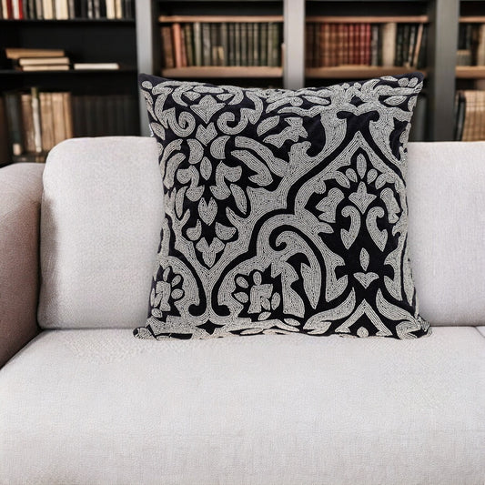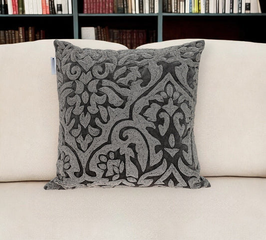 Gray & Silver Damask Velvet Pillow w/ Beads