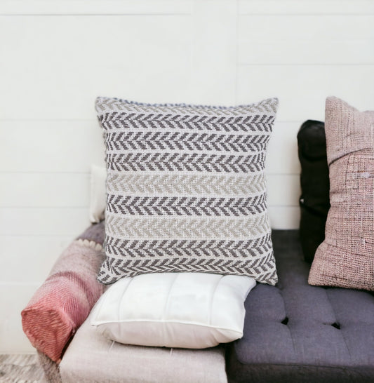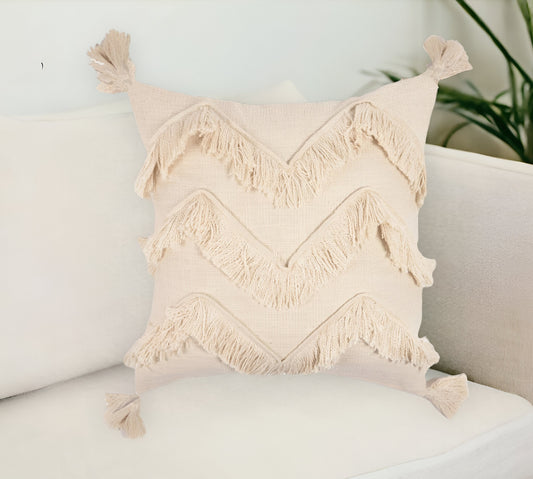 Off White Chevron Cotton (Cover Only) w/ Fringe & Tassels