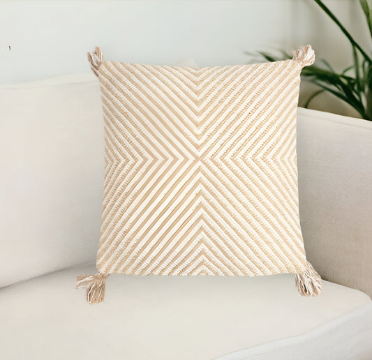 Beige & White Geometric Cotton Blend (Cover Only) w/ Tassels