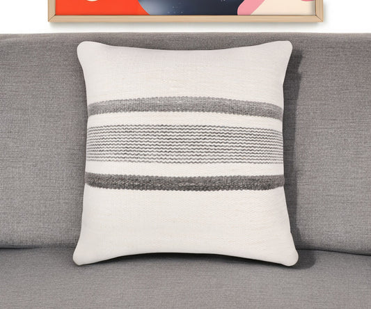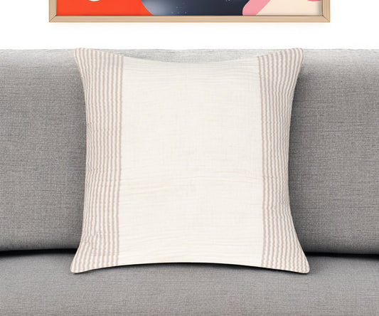 Beige & White Geometric Silk Pillow w/ Embroidery