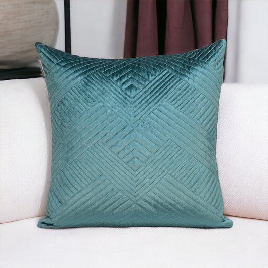Geometric Lush Quilted Blue Pillow