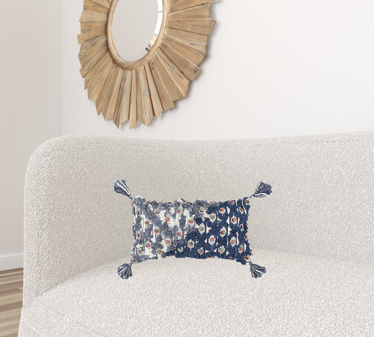 Denim Blue Repurposed Woven Strips Lumbar Pillow