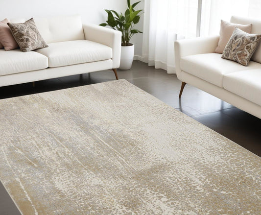 10 x 13 Ivory Gray & Gold Stain Resistant Rug