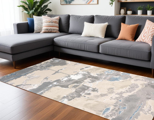 10 x 13 Ivory Gray & Blue Stain Resistant Rug