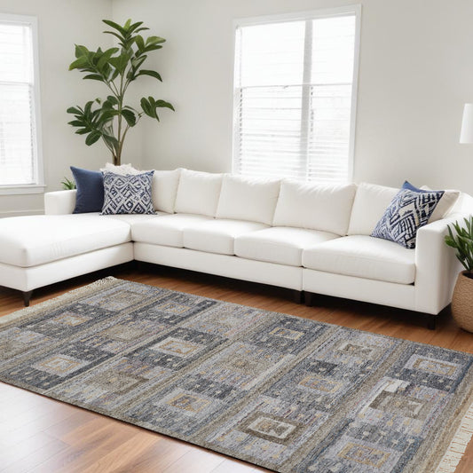 10 x 13 Gray & Brown Geometric Hand Woven Rug With Fringe