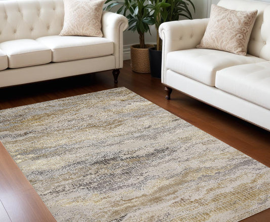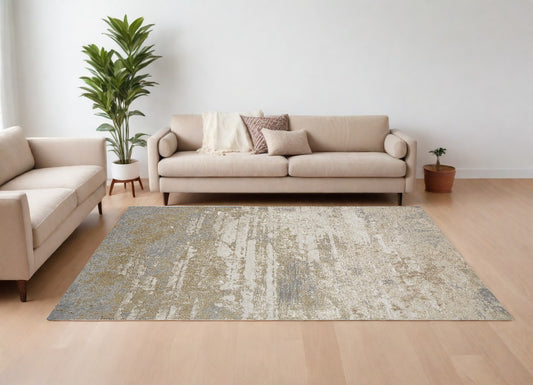 10 x 13 Gold Gray & Ivory Stain Resistant Rug