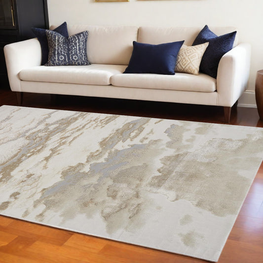 10 x 13 Ivory Tan & Gray Stain Resistant Rug