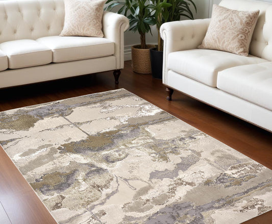 10 x 13 Ivory Gold & Gray Stain Resistant Rug