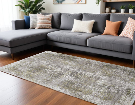 12 x 15 Green Gray & Ivory Rug With Fringe