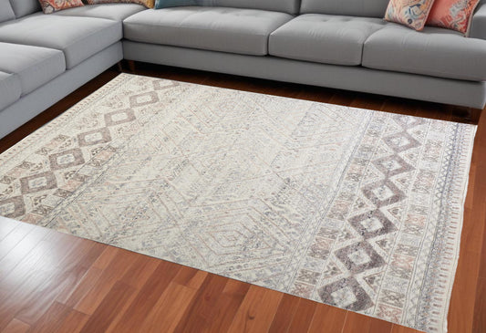 12 x 15 Tan Ivory & Gray Power Loom Distressed Rug With Fringe