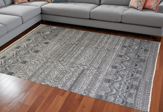 12 x 15 Gray & Black Power Loom Distressed Rug With Fringe