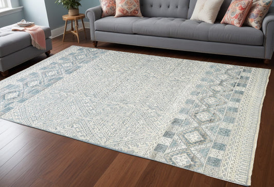 12 x 15 Ivory Blue & Gray Geometric Hand Knotted Rug