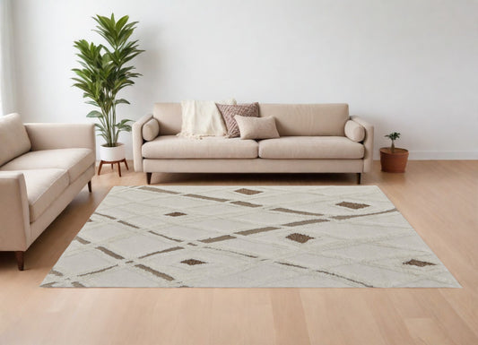 12 x 15 Ivory Taupe & Brown Wool Geometric Hand Tufted Rug