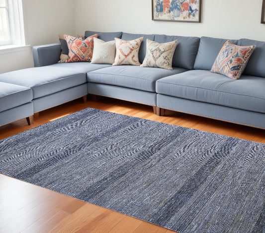 12 x 15 Blue & Silver Wool Striped Hand Knotted Rug