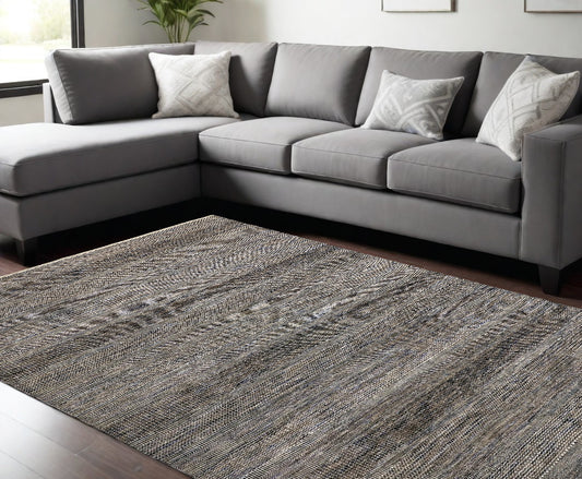 12 x 15 Gray Striped Power Loom Distressed Stain Resistant Rug