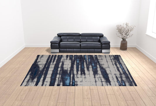 12 x 15 Ivory & Blue Marble Power Loom Distressed Rug